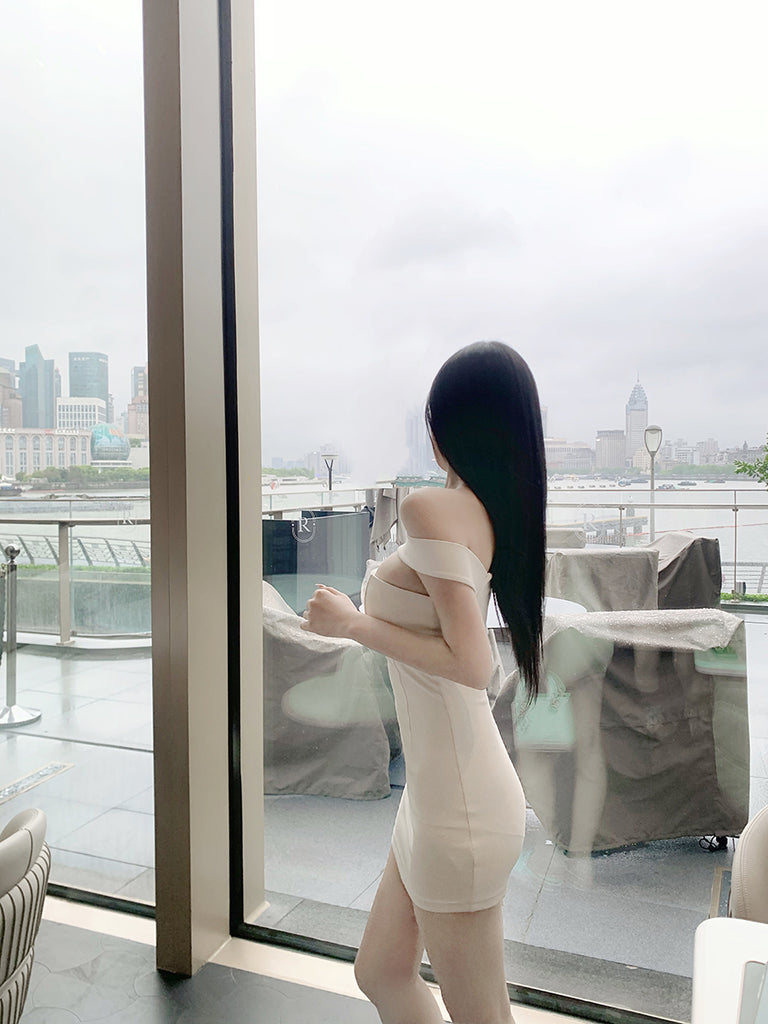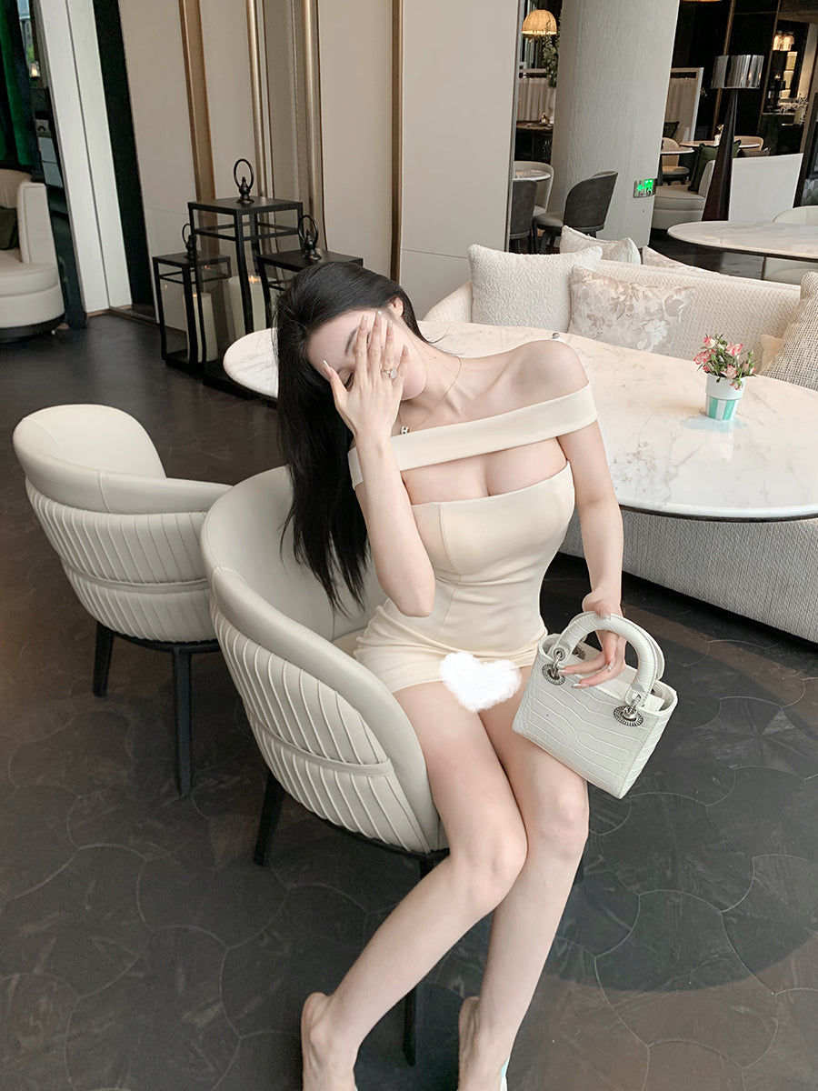 大胆なデコルテスリットデザインの