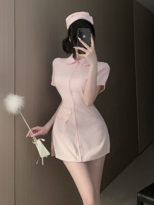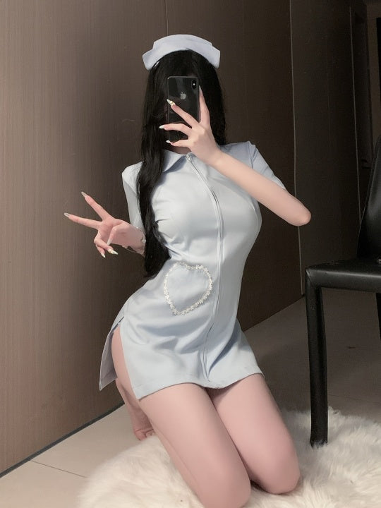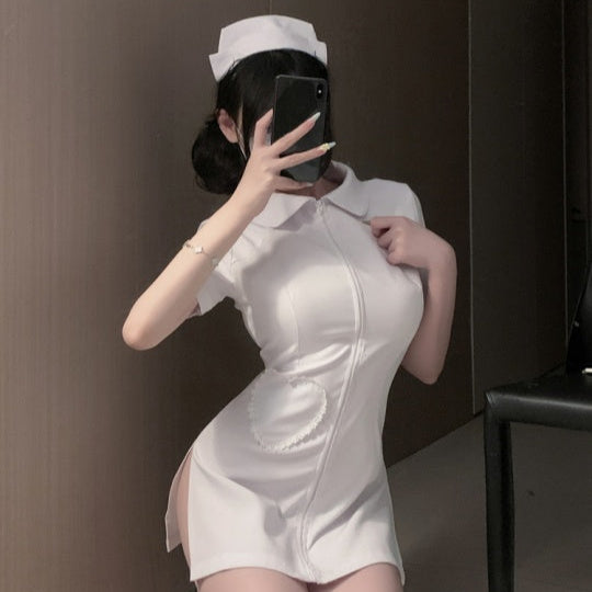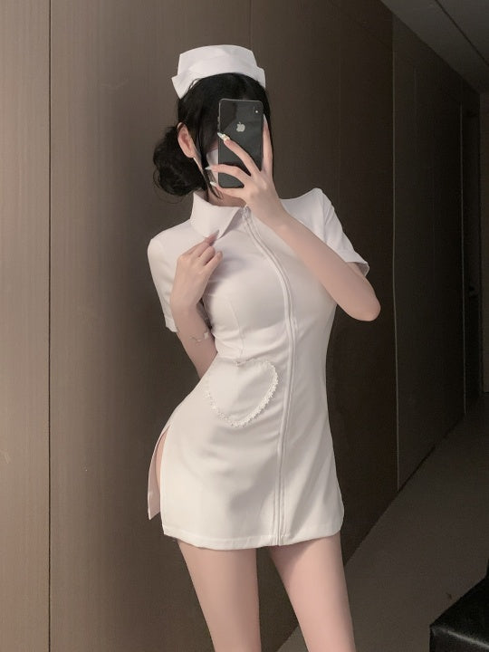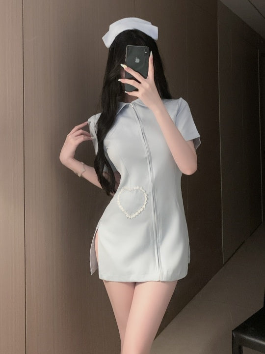 ミニ丈ジップアップナースコスプレ【No.3021】